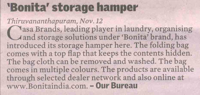 Bonita Storage Hamper, Hindu Business Line (November 12th, 2013)